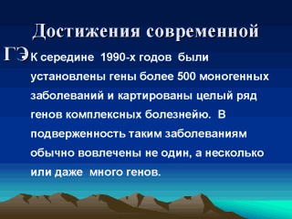 нейропсихические, онкологические и др. болезни . Изучение генетики таких комплексных заболеваний - сложная задача из-за олигогенной и полигенной природы их детерминации, неполной пенетрантности, фенокопий и генетической и клинической гетерогенности. |