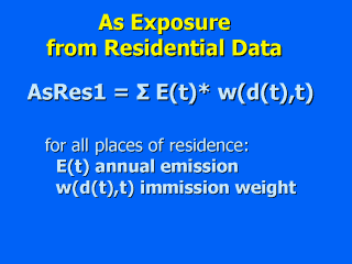 arsenic pollution. A residual confounding with occupational exposure cannot be ruled out. Every place of residence held for at least 1 year since 1953, when the power plant began operating, was classified according to the distance to the plant < 5 km, 5-10 km, > 10 km. The cutoffs were derived from atmospheric dispersion modelling of the historical pollution pattern. To calculate Asres1, the emission data were weighted by distance and time to estimate the immision burden of a person with respect to places of residence or work. Note that persons living in the vicinity of the power plant had elevated urinary arsenic concentrations. |