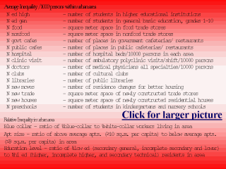 macro inequality indicators by 33 urban areas, Moscow census, 1989 Risk for poverty Family size - ratio of % families > 5 members in urban areas to all families living in urban area |