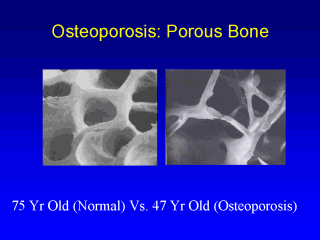 Literally osteoporosis means porous bone. Fractures associated with osteoporosis are a debilitating and frequently fatal health problem in older adults. However, they can occur even in younger adults and are not an inevitable result of aging.