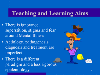 action of therapies ill understood. In the 19th Century there was however a considerable skill in history taking, examination and the description of disease. This ignorance with diagnosis based on clinical skills and treatment on empiricism is changing rapidly. Today there is an increased understanding of brain biochemistry and the ability to visualize brain-activity in health and disease with Computerized Tomography (CT scans), Magnetic Resonance imaging ( MRI) and Positron Emission Tomography(PET). In turn this leads to a rational therapeutics. It is much more difficult to define mental illness than renal failure. There is no convenient laboratory test to distinguish the ill from the not ill. A rational,pragmatic approach has been effective and even successful with the advent of new medications in the 1950’s , the closure of large institutions-the feared asylums, the development of community support services, a realization of the chronicity of illness and the need for treatment over months or years. |