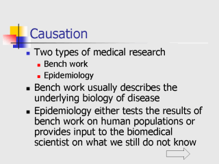 1. Bench or laboratory Science usually can control the environment the experiment is taking place in - Control for diet, and environment Animal is in 2. Epidemiology cannot directly control for a human subjects environment - Therefore Epi uses certain methods to study illness among populations and attempts to control for differences in the individual study subjects “environment” - We do this using a combination of Methods of Study design and Statistical analyses |