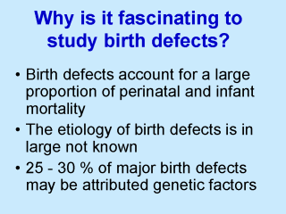 severe growth retardation. In this lecture the terms ”congenital malformation” and ”birth defect” are used interchangeably. |