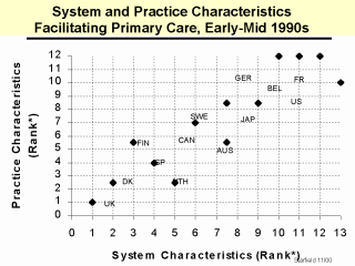 policy characteristics are plotted against ranks for practice characteristics, it is