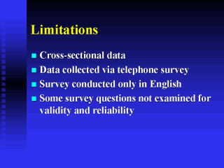 Also, as the survey was conducted in English-all non-english speaking residents were excluded. (including a large, population of Asians and Latinos)