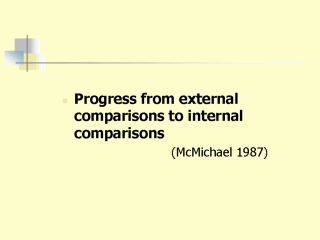 | Comparing rates of the health outcomes of interest between individuals with high exposure and those with low or no exposures. This is what we did in our study since the external reference group was not ideal. In such situation it must be a way of gradients in exposure. However, it is not likely that all occupational hazards pose gradient effects on human health (many industries show uniform exposure). |