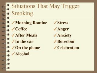 We may explain that it is easy to change a patterns. Instead of smoking in these situations people may walk, drink a tea, deep breathing etc.