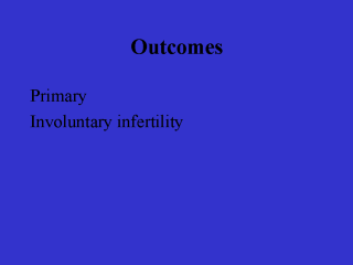 | We were most concerned with long-term outcomes, namely infertility. Our primary outcomes had to do with involuntary infertility. To be more specific, the primary outcome was simply pregnancy. Infertility in this particular population is exceedingly difficult to quantify. These are women who are not trying to get pregnant because they’re changing partners, going on contraception, having a lot of sexual intercourse, and are a very mobile and disenfranchised population. |