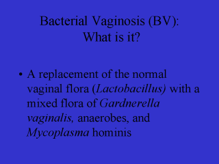 vaginosis, which is a replacement of the normal vaginal flora, which is called