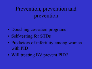 PEACH I. Will treating BV prevent PID? In the GIFT study, the last data that I mentioned,