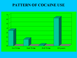 | There's not a whole lot of cocaine use in this population, beginning at about 3.5%. These are totally different cohorts. The women who used during pregnancy in the '80s are generally better off because they're using real cocaine. These other women are using crack, and they're less well-off, more likely to be African-American. |